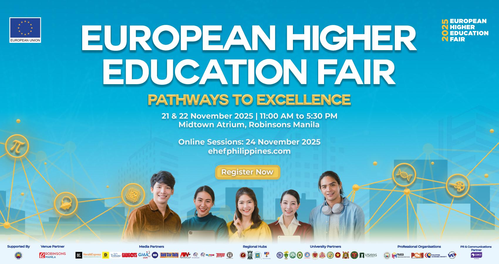 The annual European Higher Education Fair (EHEF) is a great chance to explore diverse programmes that are suited to your interests, skills and talents. It also best highlights the EU’s unwavering commitment to equip Filipino students with the skills they need to become future leaders who can influence, innovate, and contribute to progress.